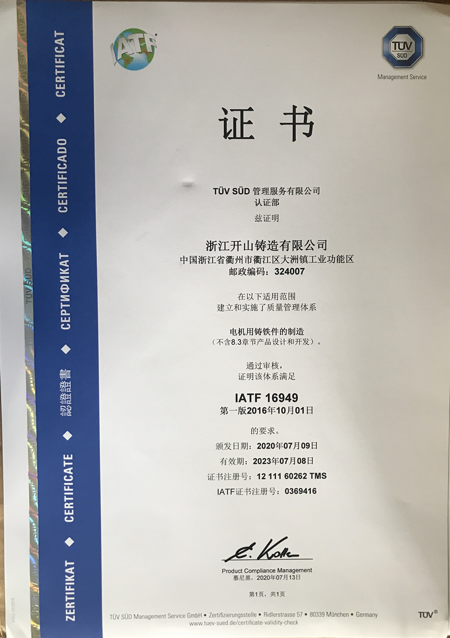 资质证书 您现在的位置: 浙江开山铸造有限公司 > 公司介绍 > 正文